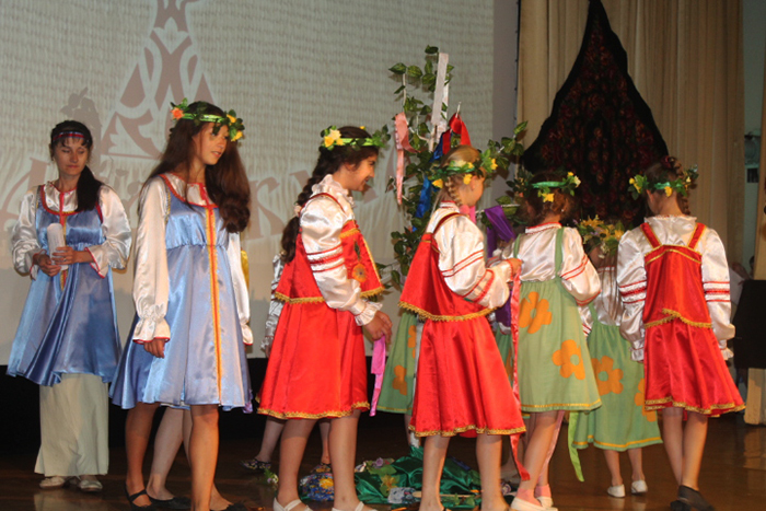 В концертной части фестивальной программы с русскими народными песнями выступили фольклорные коллективы сельских домов культуры Республики Татарстан, а автор проекта – Ильина Райда Фагимовна вместе со своими воспитанниками мастерской ДПИ «Мозаика» и ансамблем «Ритмы радости» (рук. Барханова Д.Е.) показали обрядовое действо, связанное с празднованием Семика – Троицы («зеленые святки»).